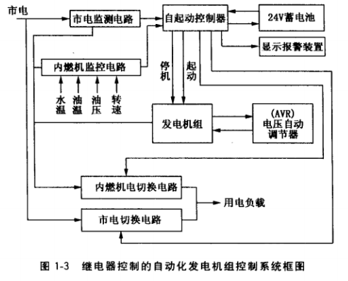 (1) 继电器控制。继电器控制的发电机组控